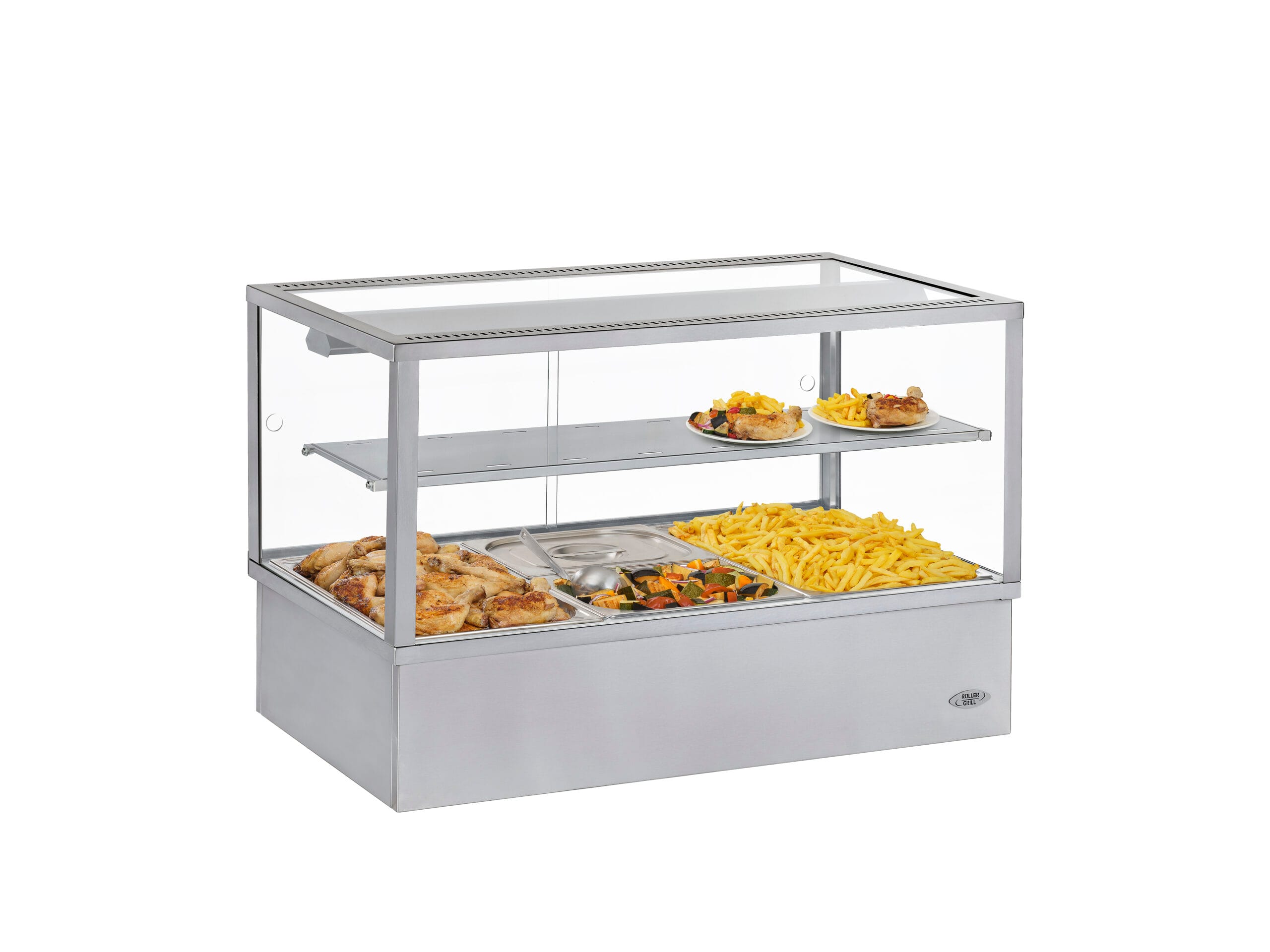 Una vitrina de exposición es una zona de venta de alimentos mantiene los productos a la temperatura adecuada y los expone de forma atractiva. La gama de vitrinas de Roller Grill ofrece equipos con procesos de regulación de temperatura distintos y adaptables a cada espacio.